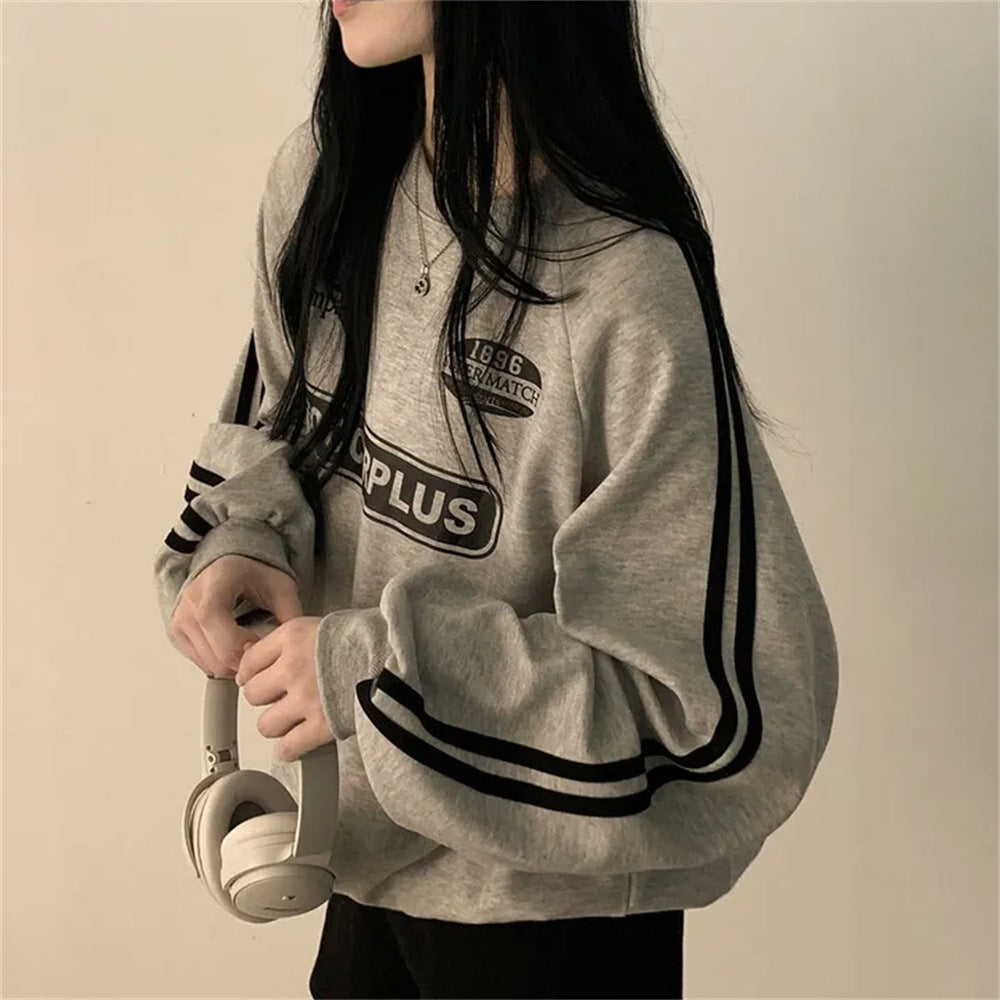 Black Lazy Chic Korean Style Round Neck Sweater - Gray Thin / M