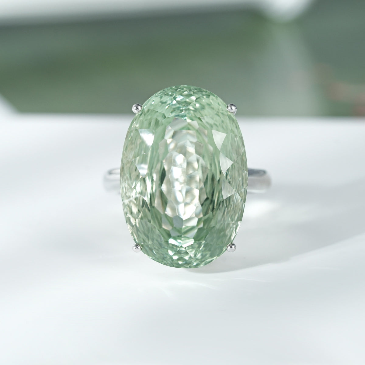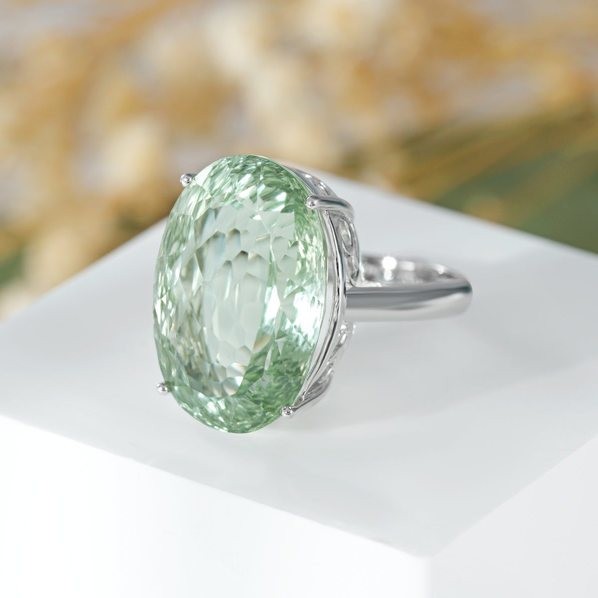 S925 Sterling Silver Green Amethyst Ring For Women Luxury Premium Retro Gem